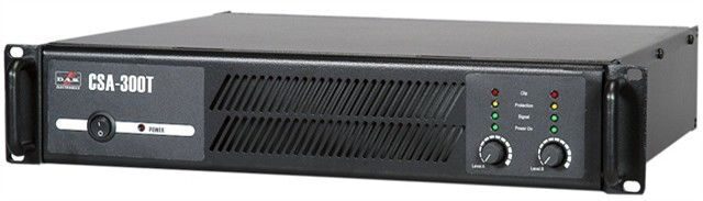 DAS AUDIO CSA-300T - усилитель мощности для систем трансляции и речевого оповещения, с выходами 70 В и 100 В. Мощность усилителя CSA-300T: 2х150 Вт./ 70 В, 100 В, 300 Вт. В моно режиме, / 140, 200 В. Усилитель мощности DAS AUDIO CSA-300T отлично подходит для бюджетного решения стационарной инсталляции в помещениях коммерческого направления или общественных помещениях. Прочный металлический корпус, регуляторы мощности на передней панели, двойной вентилятор, обеспечивающий отличное охлаждение усилителя DAS AUDIO CSA-300T, с минимальным шумом и переменной скоростью вращения, а так же, высококачественные винтовые зажимы. Диапазон воспроизводимых частот: 20 – 22000 Гц. Габаритные размеры: 880х483х435 мм.