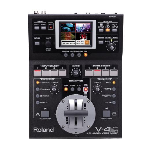 Roland V-4EX задуман как коммутатор для производства продукции в режиме реального времени, а также как устройство, реализующее функции потокового вещания по сети. Поэтому он поддерживает внедрение аудио, оборудован встроенным аудиомикшером и предусматривает возможность задержки аудио на 4 кадра для синхронизации с видеорядом (липсинга). Предусмотрена работа с видео формата HDCP, позволяющая микшировать защищенный от копирования материал, например, с игровых консолей или дисков Blu-ray при производстве собственной продукции в прямом эфире. Входы HDMI с первого по третий поддерживают работу с разрешениями до 480p/576p, четвертый вход HDMI предусматривает прием сигналов с разрешением вплоть до 1080р, а RGB — вплоть до WUXGA (1920x1200). Несмотря на то, что внутренняя обработка основана на стандарте SD, выходной сигнал можно масштабировать до 1080p или 1920x1200.