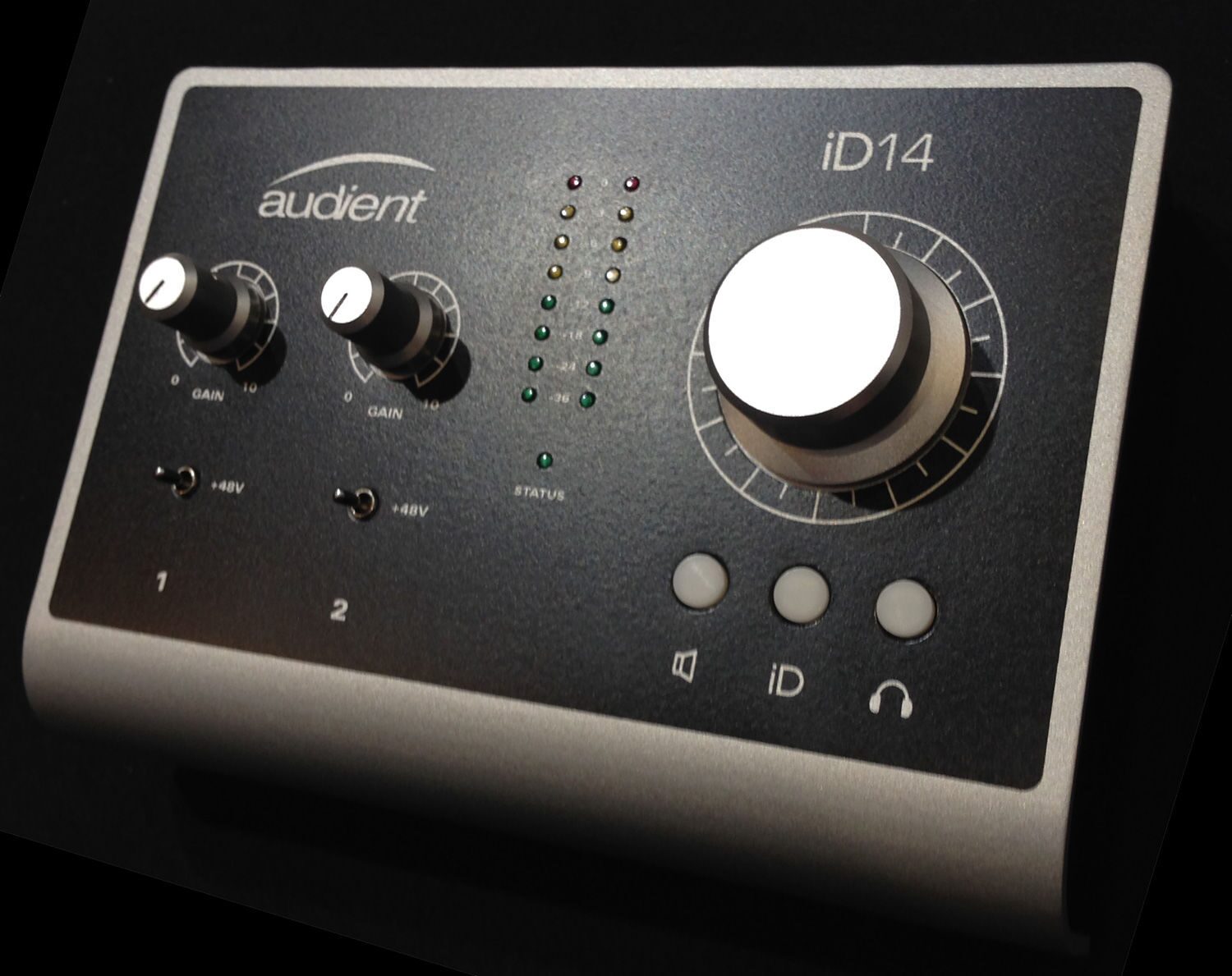 Audient iD14 – звуковой интерфейс для шины USB 2,0 в компактном прочном корпусе c универсальным набором функций и качеством звука, не уступающим полноразмерным консолям.