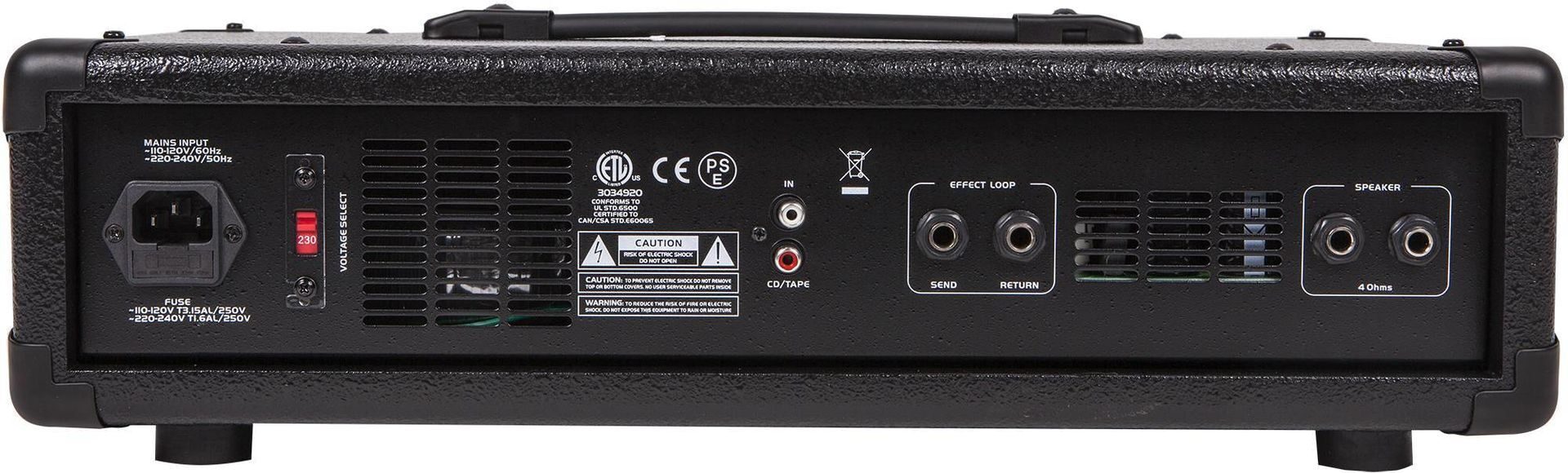 Микшерный пульт имеет 4 входных канала, line/mic, регуляторы Treble, Bass, Volume. Так же на каждом канале имеется посыл на обработку и ручка регулировки канала.