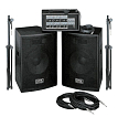 Мобильный звуковой комплект общей мощностью 500 Вт состоящий из микшерного пульта со встроенным усилителем и акустических систем с 15" динамикам и пьезо твитером. В комплект поставки так же входят две акустические стойки под АС, динамический микрофон с кабелем 5 метров и два акустических кабеля Jack-Jack длиной по 10 метров каждый.