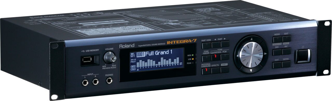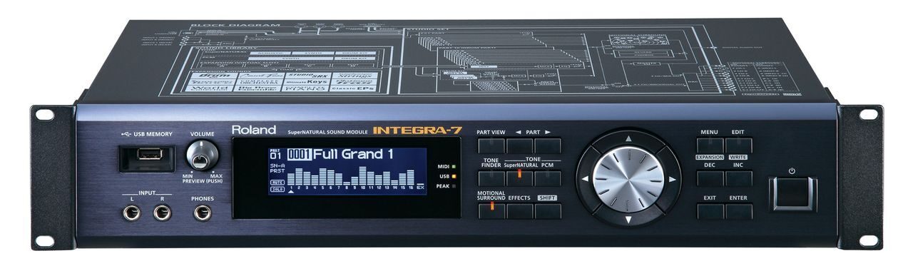 INTEGRA-7 — инновационный звуковой модуль, содержащий высококачественные экспрессивные тембры SuperNATURAL и знаменитую библиотеку звуков серии SRX, а также поддерживающий функцию “Motional Surround”, которая реализует технологию RSS (Roland Sound Space) для создания объемного звука.